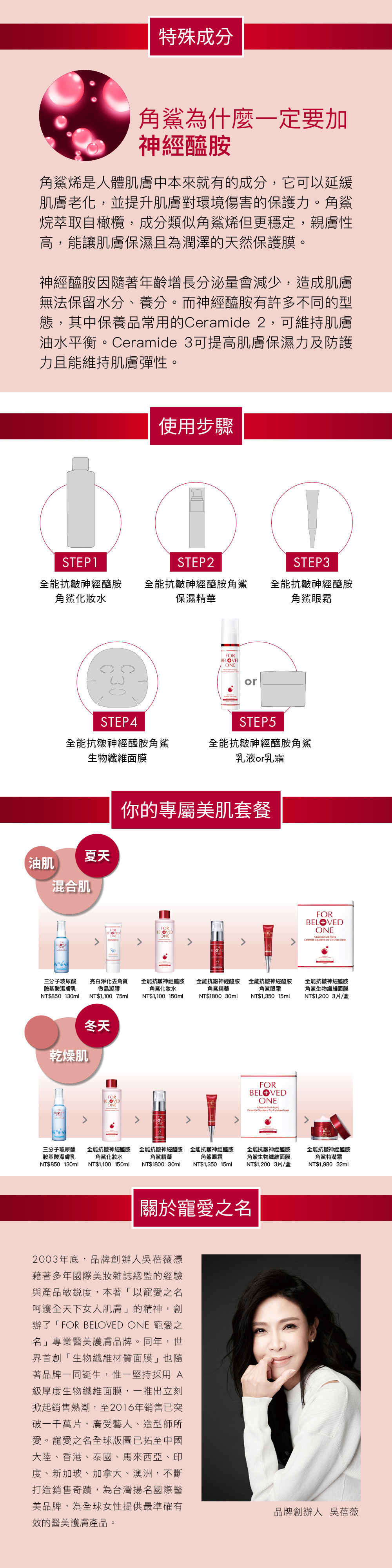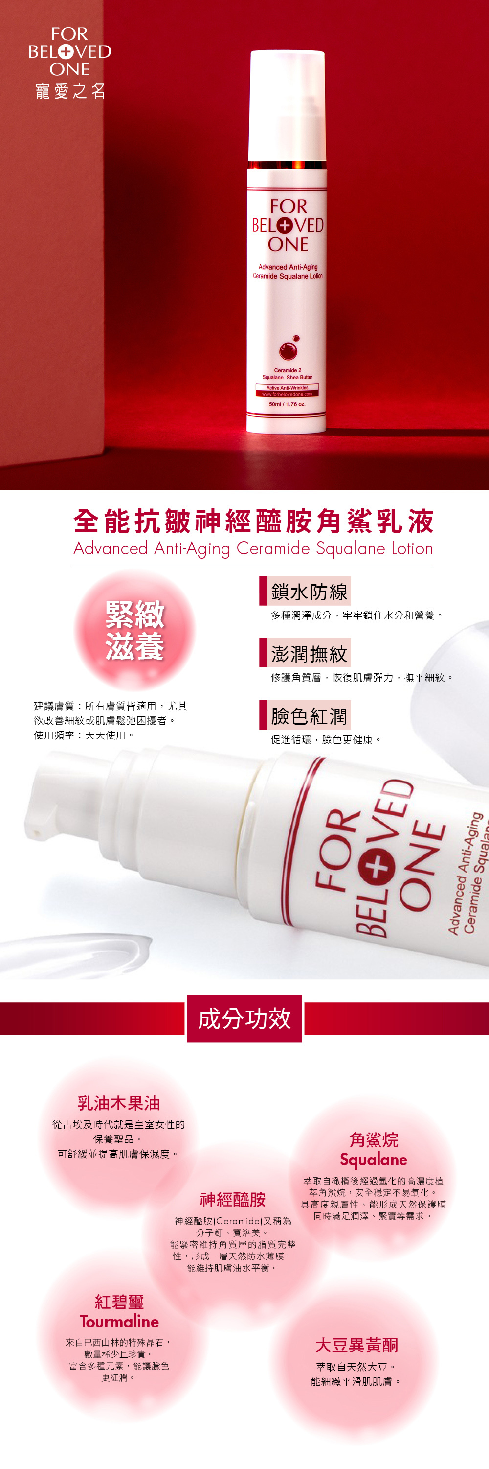 成分:神經醯胺(Ceramide 2)、角鯊烷、紅碧璽、乳油木果油、大豆異黃酮