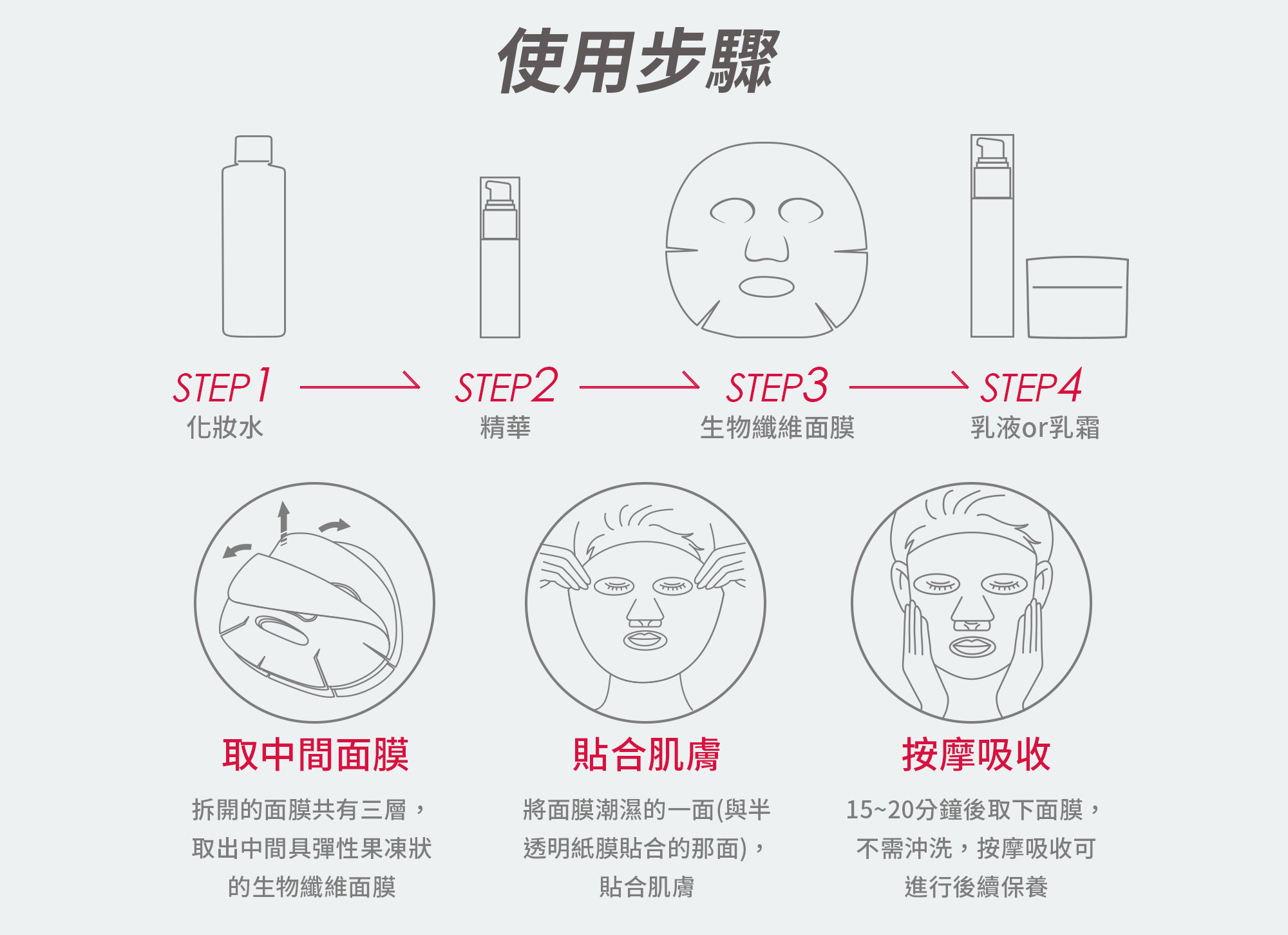 ③嚴選厚度生物纖維面膜,精華更深入肌膚!