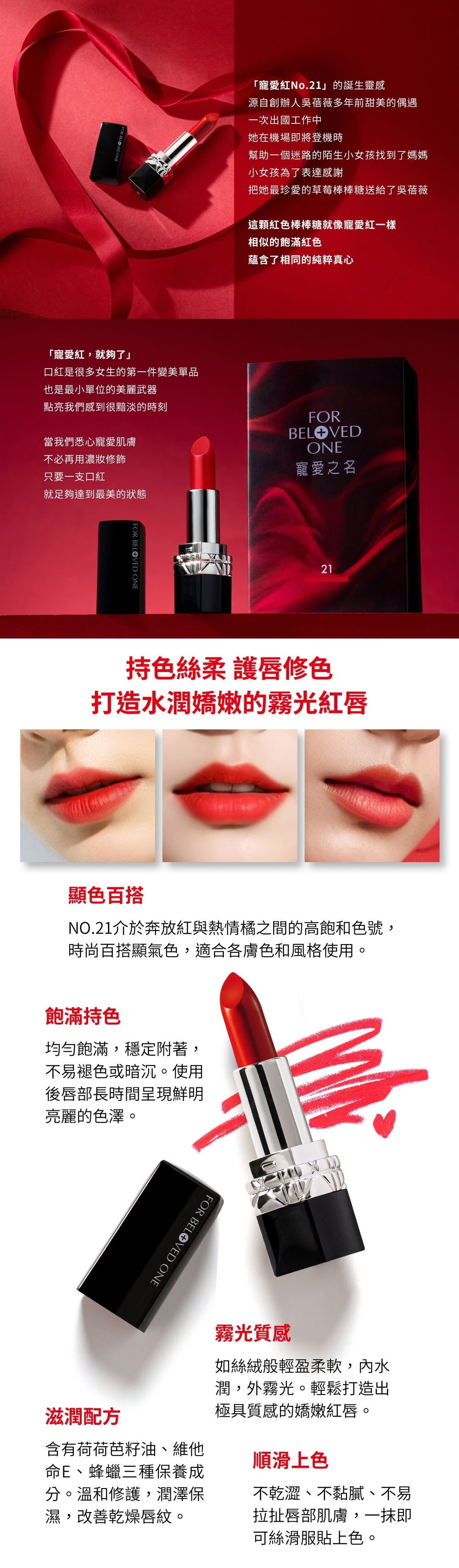 ②均勻飽滿穩定附著,使用後唇部長時間呈現鮮明亮麗的色澤。