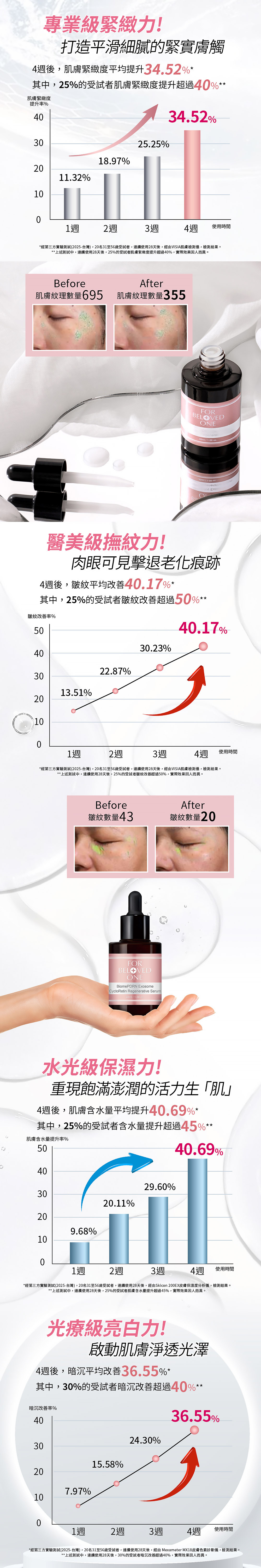 ②醫美級居家保養,可達到撫紋、緊緻、潤澤、透亮水光肌。