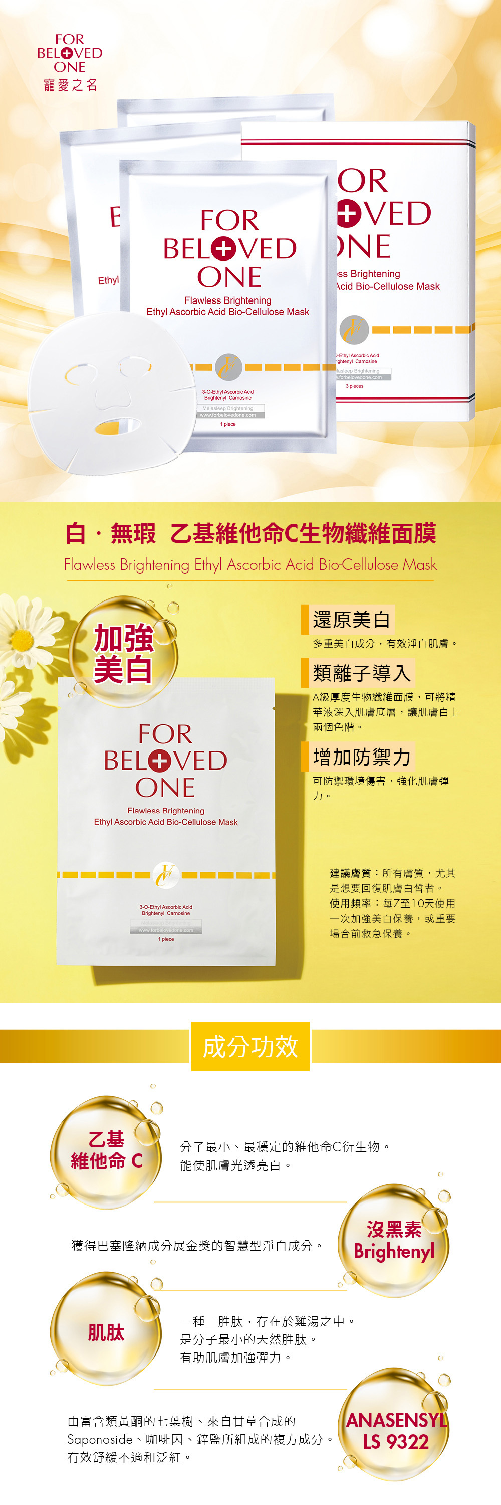 主成分:乙基維他命C、沒黑素Brightenyl、肌肽