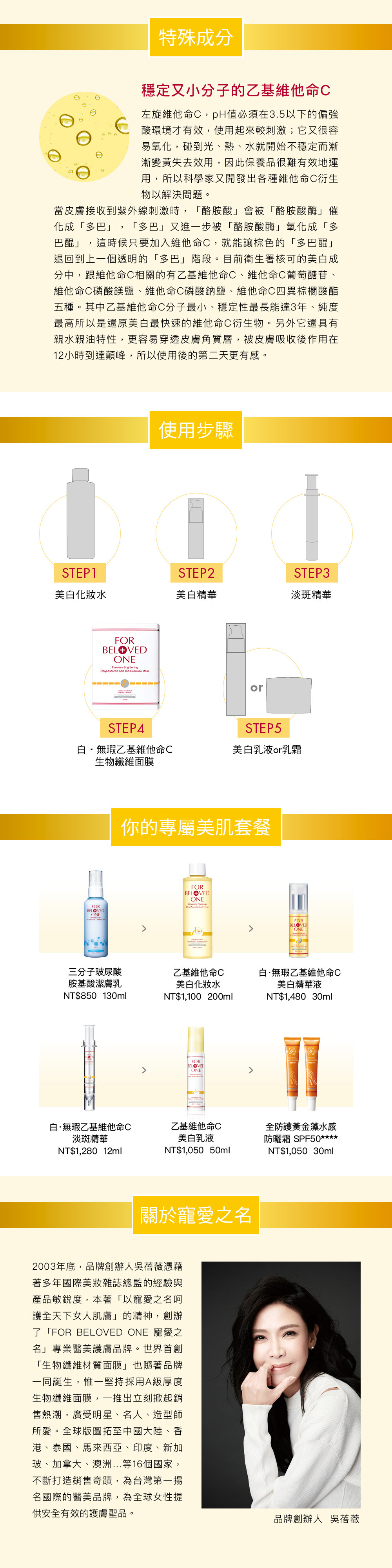 ②針對易生斑點與蠟黃肌設計;乙基維他命C可強效還原淨白!
