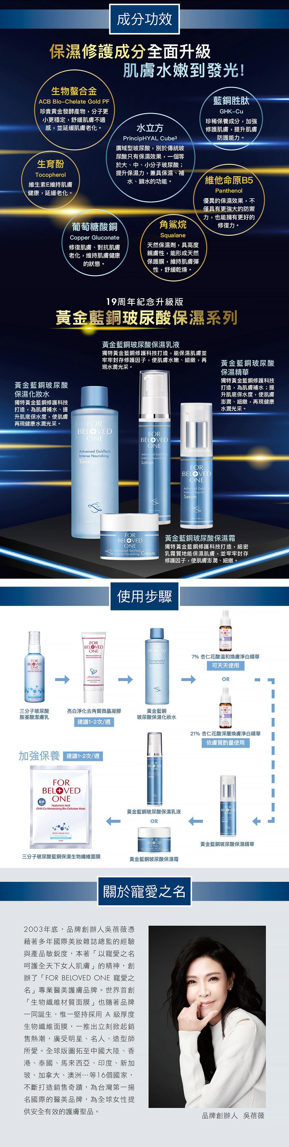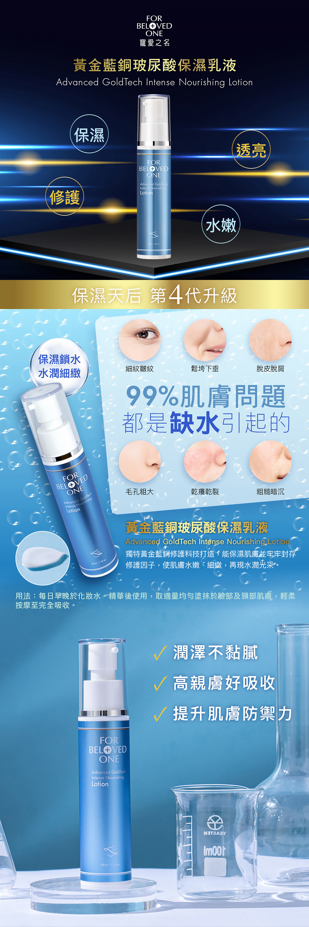 ①獨特黃金藍銅修護科技打造,能保濕肌膚並牢牢封存修護因子。