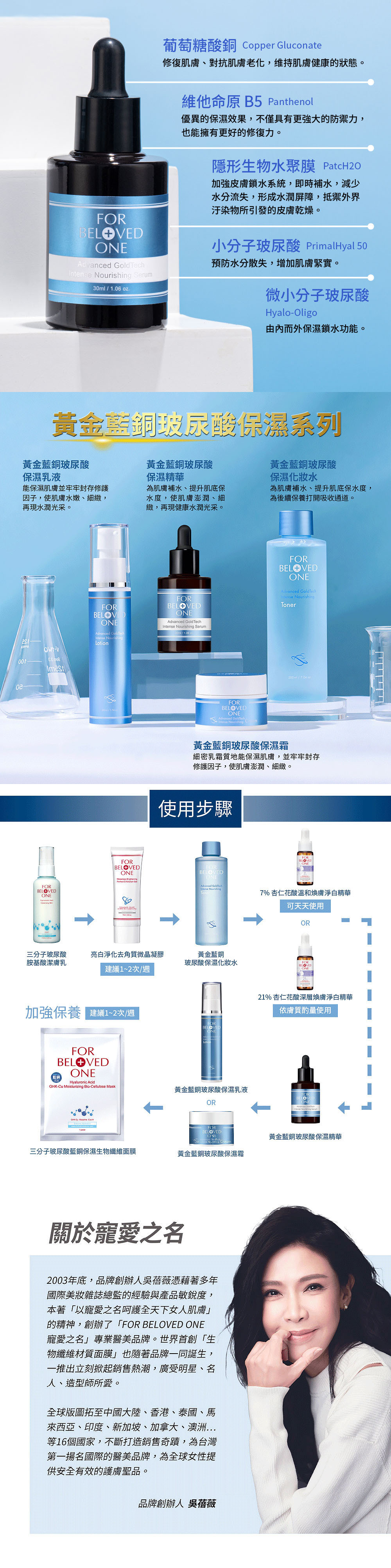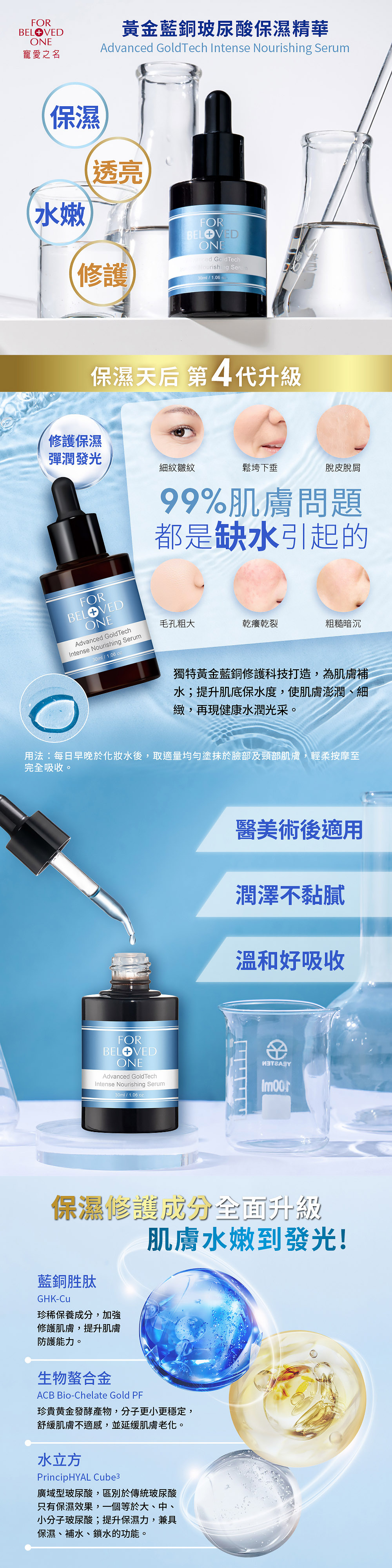 ①獨特黃金藍銅修護科技打造,為肌膚補水、提升肌底保水度