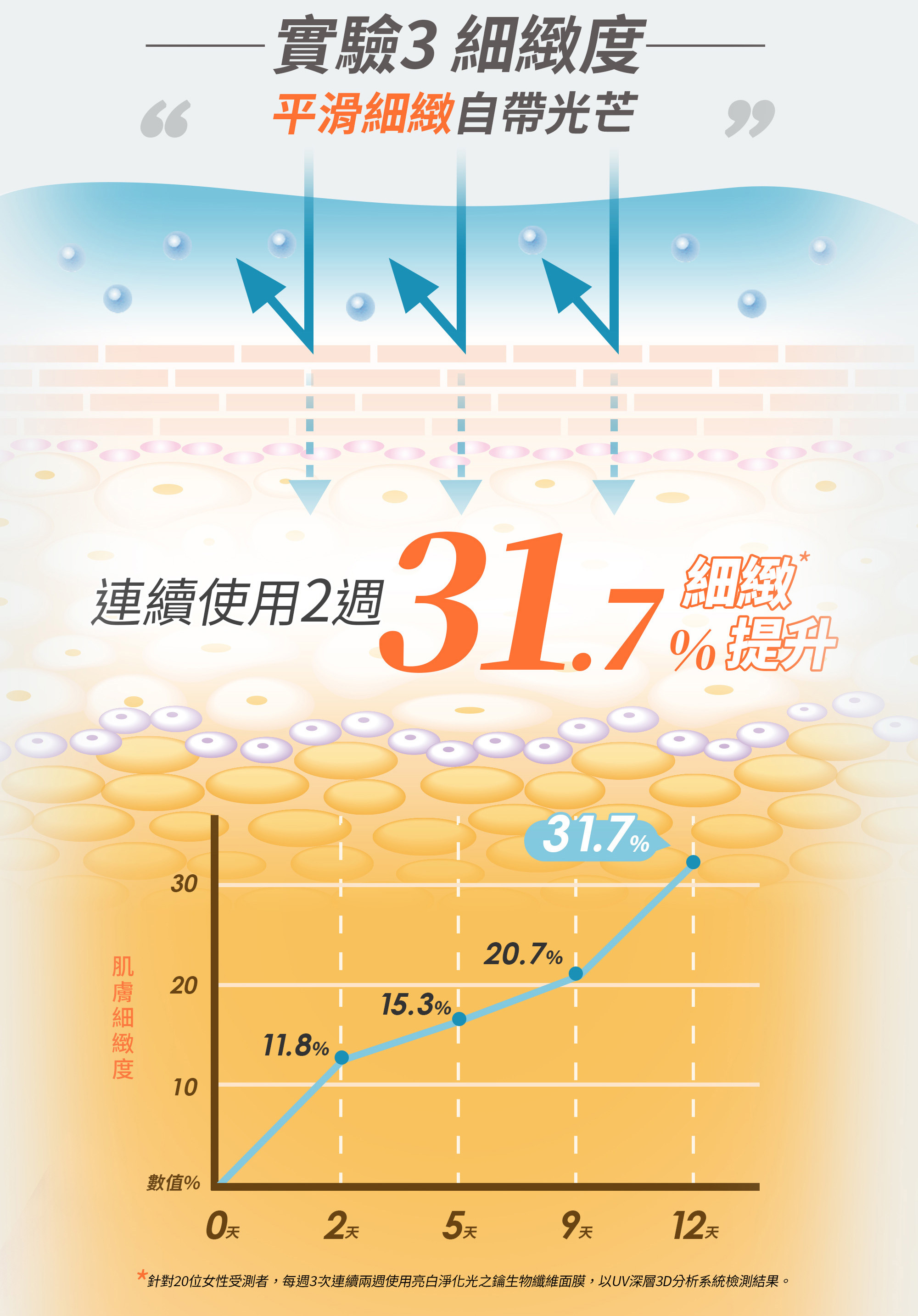 ②光之鑰淨白程式協同肌因煥白因子,肌膚再現晶亮光采!一片立現超光感無瑕淨白肌!