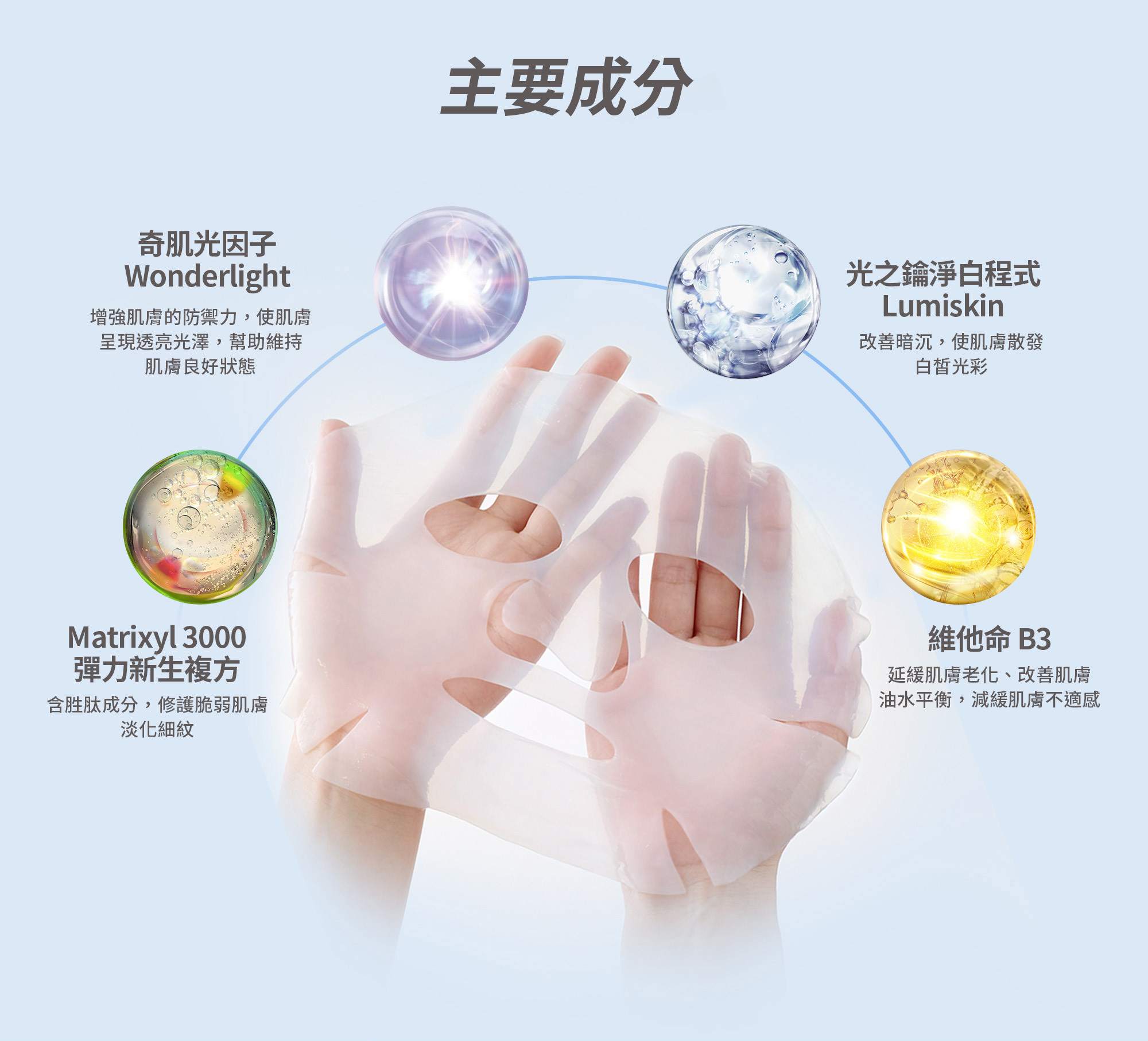 主成分:Lumiskin、Wonderlight、Matrixyl 3000、Vitamin B3