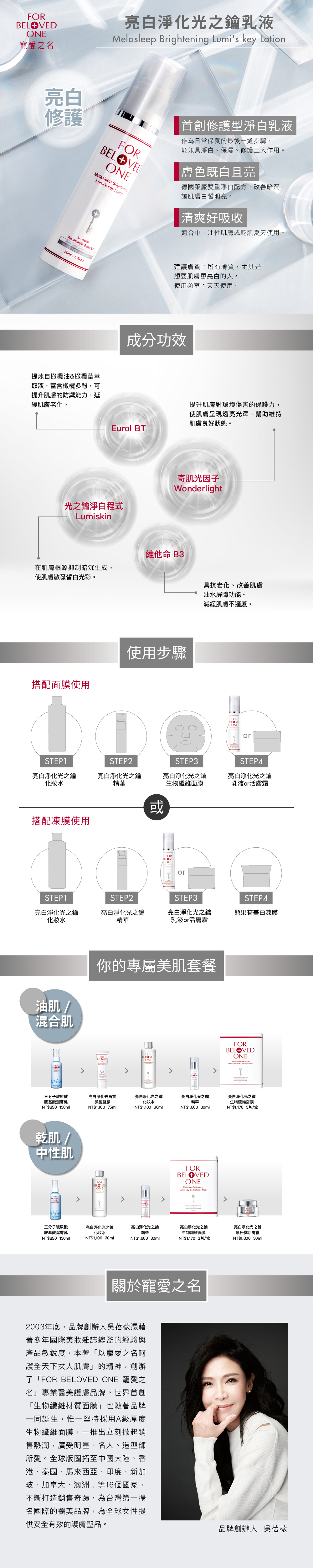 ①首創修護型淨白乳液!修護肌膚改善暗沉並使膚色均勻提亮!
